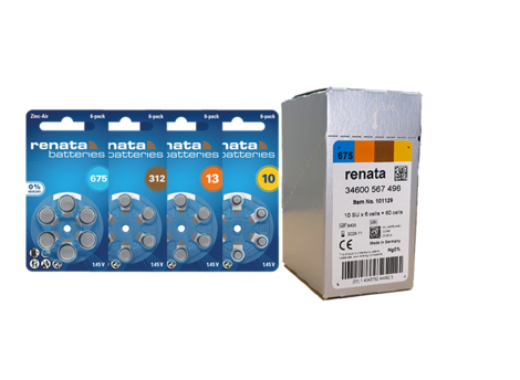 One blister - pack contains six batteries for hearing aids. The battery air holes are initially sealed off with a cover foil to prevent discharge. The battery is activated by removing the cover foil and begins to deliver current a few seconds after removing the foil. In the activated state zinc - air batteries have limited storage life and should be used as soon as possible.