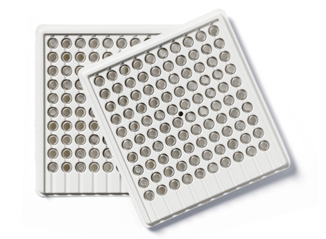Industrial multi-cell plastic trays are standard packaging for OEM manufacturers. The number of cells per stacking tray and the number of stacking trays per shrink unit depend on the model in question.